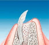 Si la pared ósea vestibular presenta un defecto (hasta 50%) Geistlich Bio-Gide® se puede recortar en seco e introducirse en el alveolo con la cara rugosa orientada hacia el defecto.