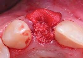 Ahora si los alvéolos están intactos nuestro mejor recurso es Geistlich Mucograft, un sustituto de tejido gingival que se utiliza para la cirugía de injerto de tejido blando en la boca.